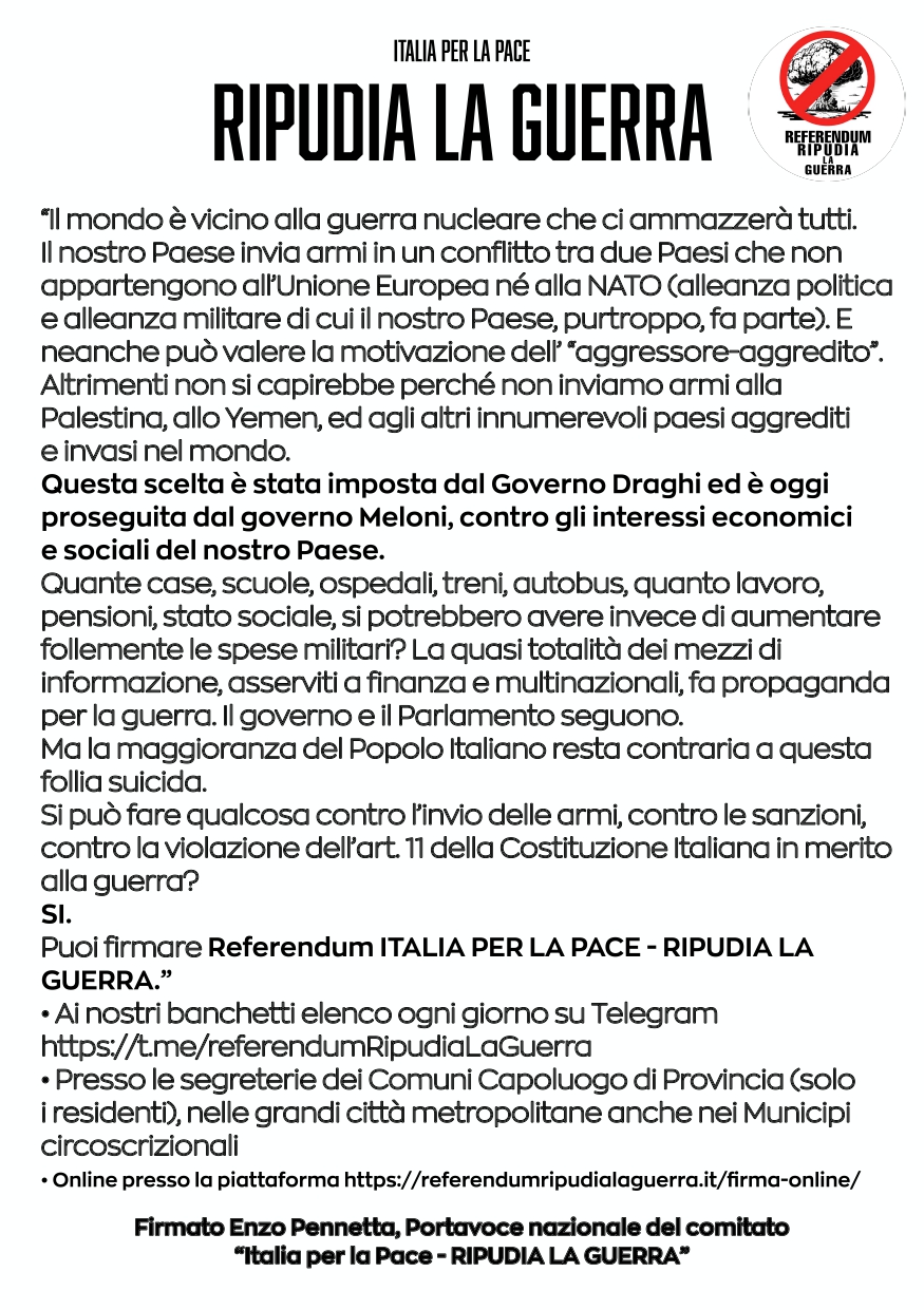 Il modulo per la raccolta firme è disponibile presso gli Uffici comunali