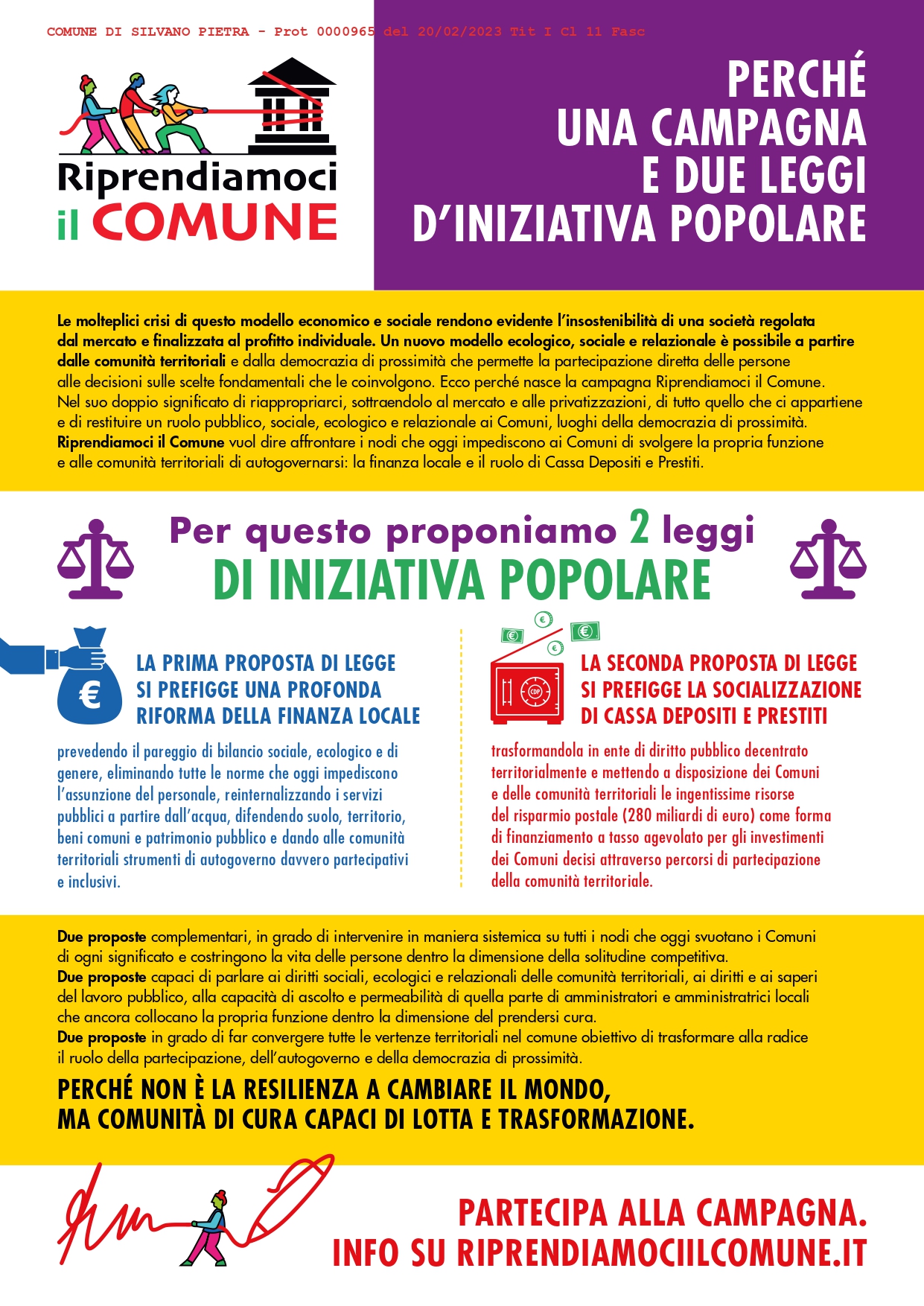 Per maggiori informazioni consultare il materiale allegato o sul sito riprendiamociilcomune.it